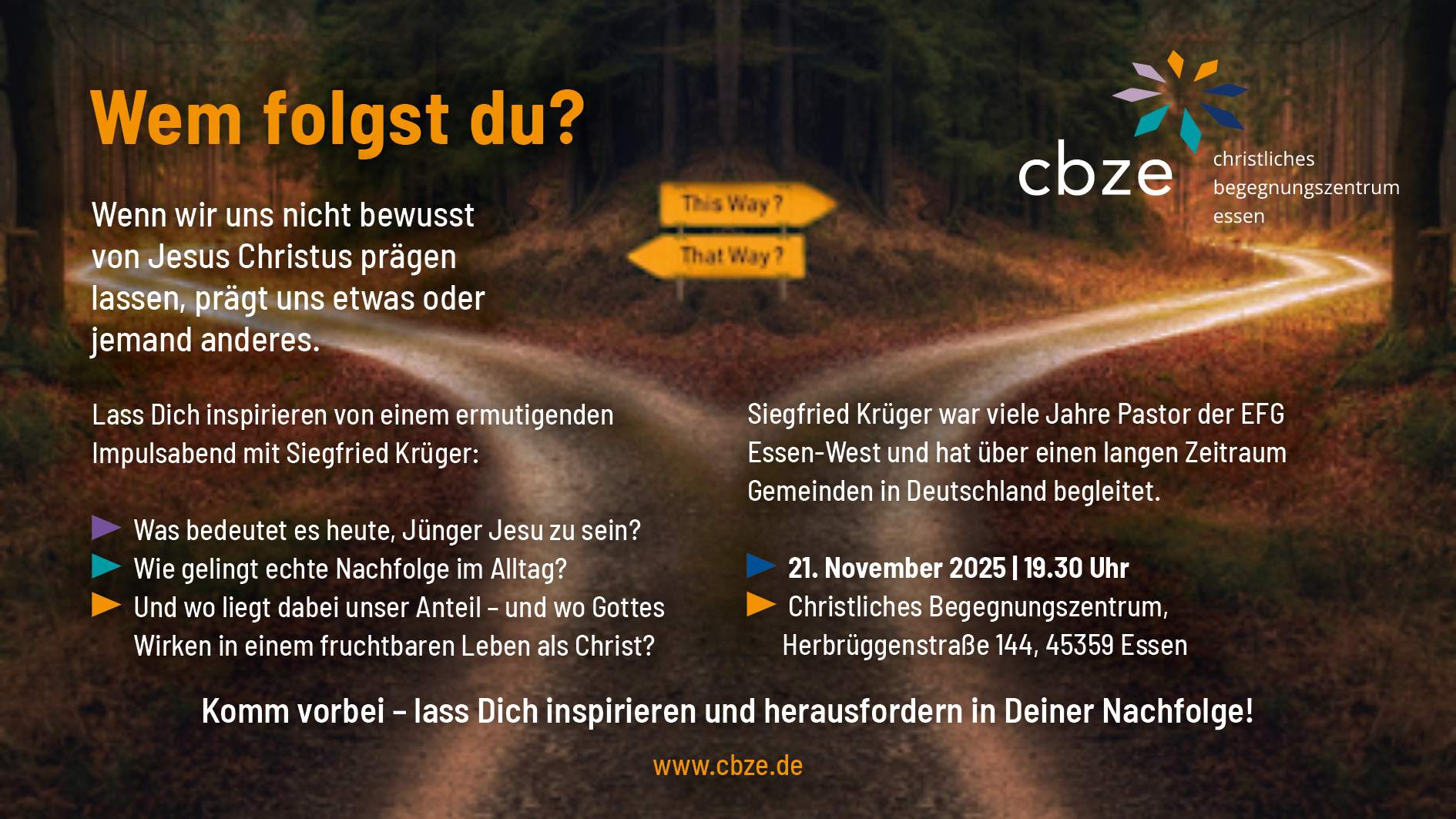 Wenn wir uns nicht bewusst von Jesus Christus prägen lassen, prägt uns etwas oder jemand anderes. Lass Dich inspirieren von einem ermutigenden Impulsabend mit Siegfried Krüger: Was bedeutet es heute,